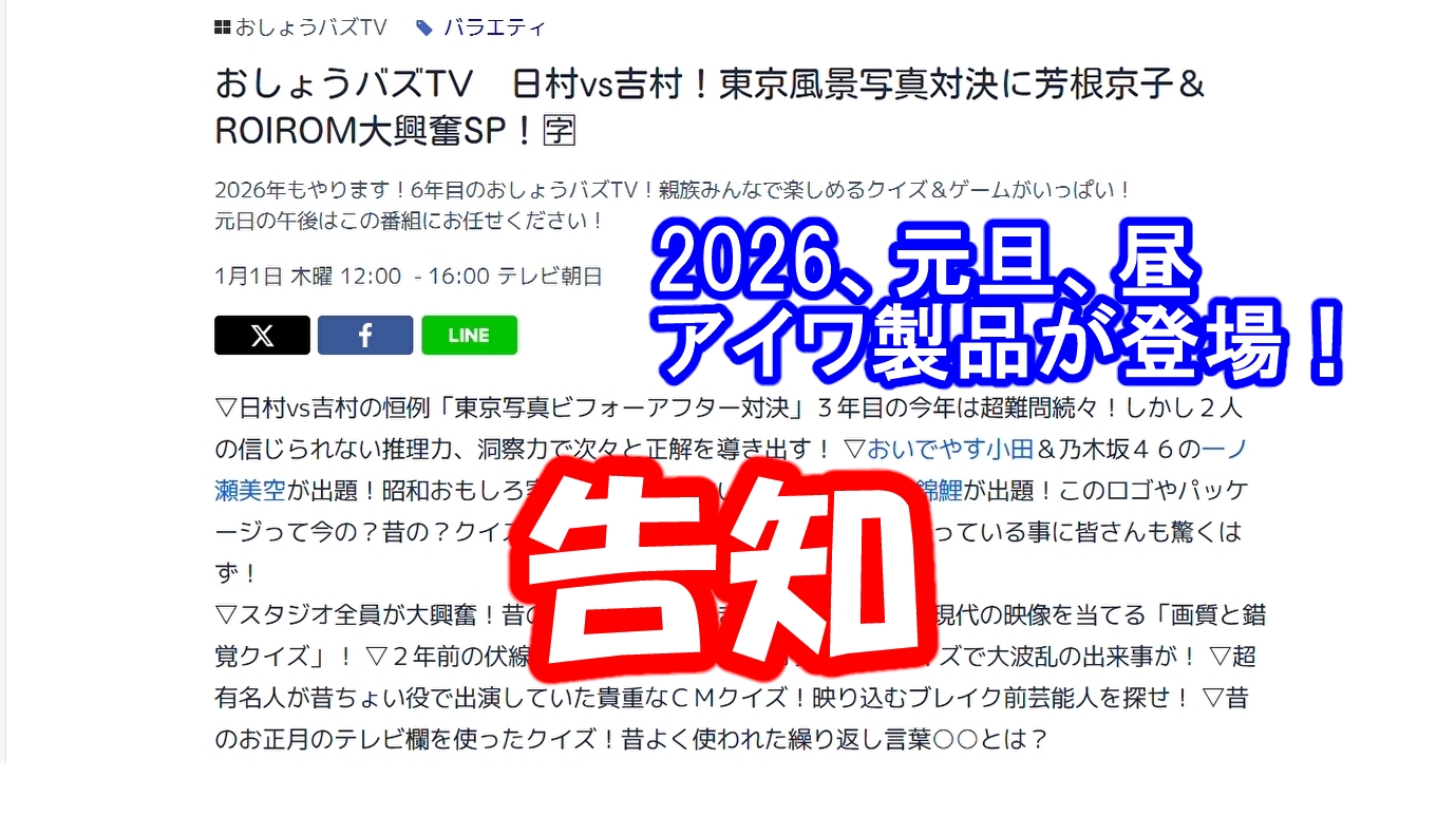 2026年元旦の地上波テレビ番組に懐かしいアイワ製品が登場します。